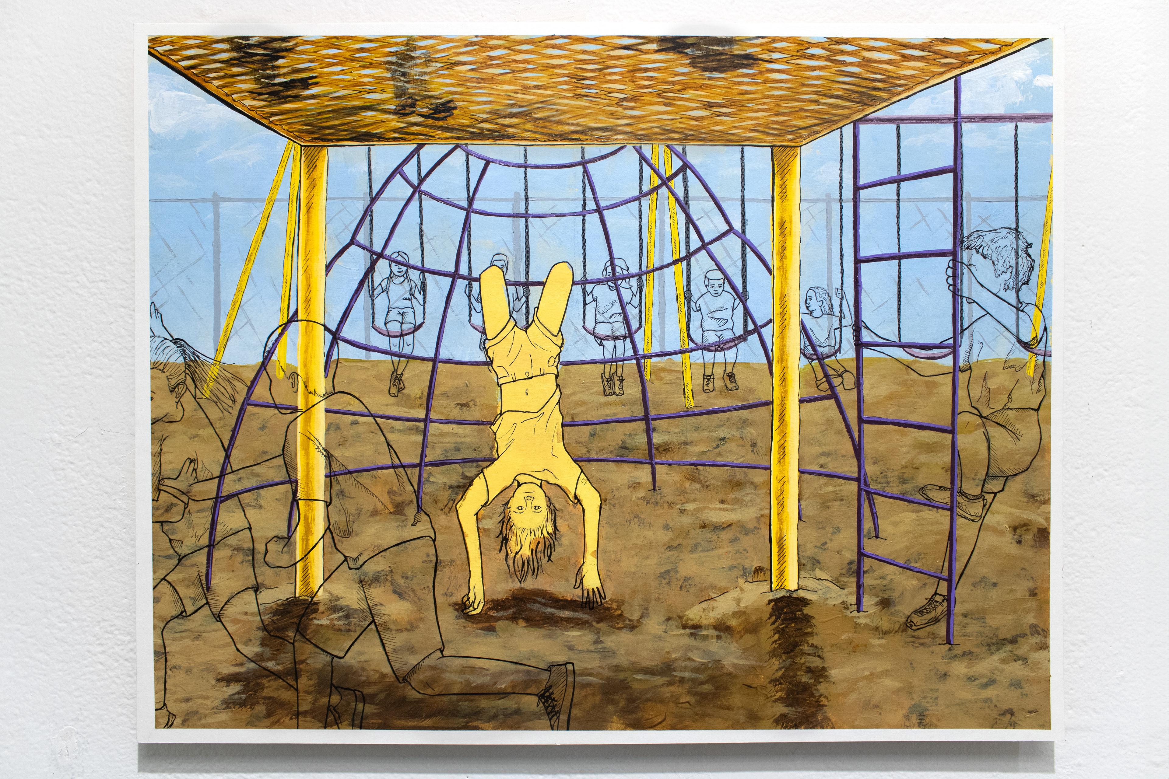 Using paint, ink, and wire, I focus on the degree of separation I often felt from my peers and illustrate the complex and competing desires that I was often unable to put into words. My work is a way to process my past, to move forward, and to show myself just how much I’ve grown, as well as a space for viewers to find validation for similar experiences and struggles of their own. Now, I am giving voice to those challenges I dealt with for so long that I never had the strength to confront through a series of narrative images.